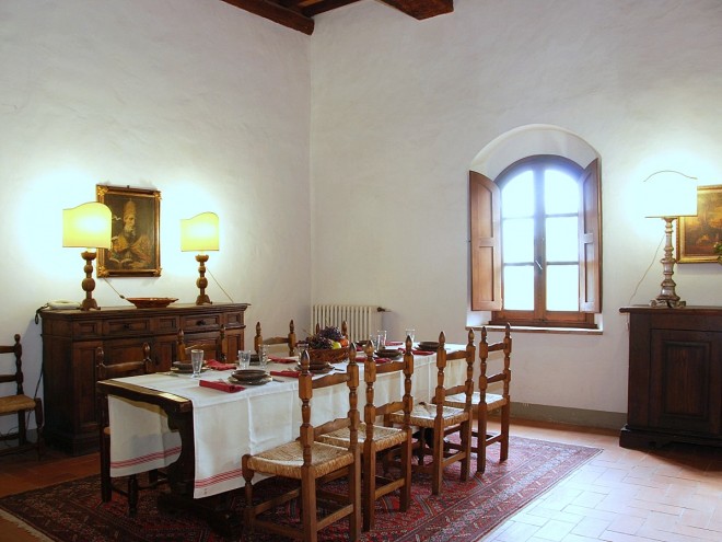 On accède à la maison par une allée de six cents mètres qui traverse une vaste propriété. San Vito est une villa florentine en pierre, édifiée sur les vestiges d'une ancienne tour médiévale. Son propriétaire actuel en a fait une maison de charme, alliant confort moderne et éléments historiques, avec ses plafonds voûtés et ses intérieurs meublés de pièces anciennes. La villa dispose d'une piscine, d'un court de tennis et d'un jardin offrant une vue panoramique sur la campagne environnante. Il est à noter que le gardien réside sur place, dans un appartement indépendant.
