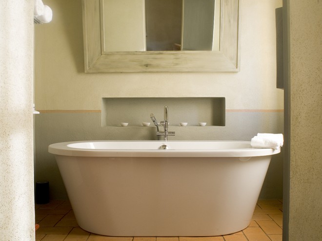 Premier étage : une chambre double avec une salle de bains (douche et baignoire hydromassage).